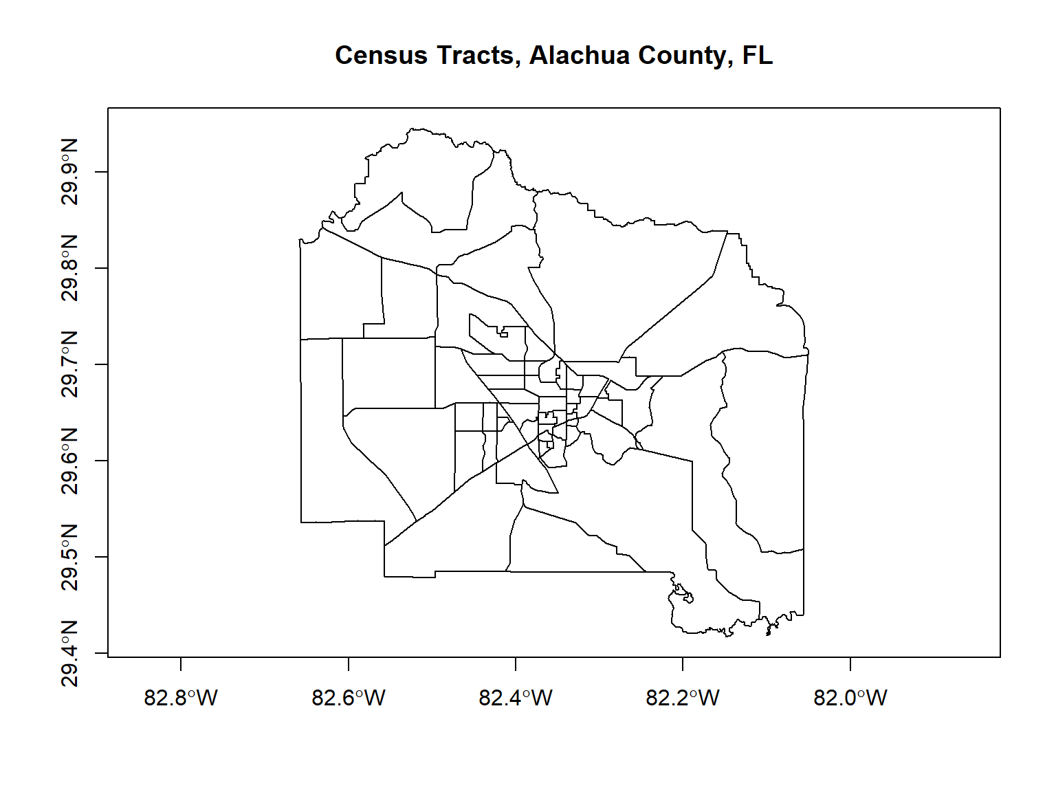 plot(fl_counties_sf$geometry, axes = TRUE)
