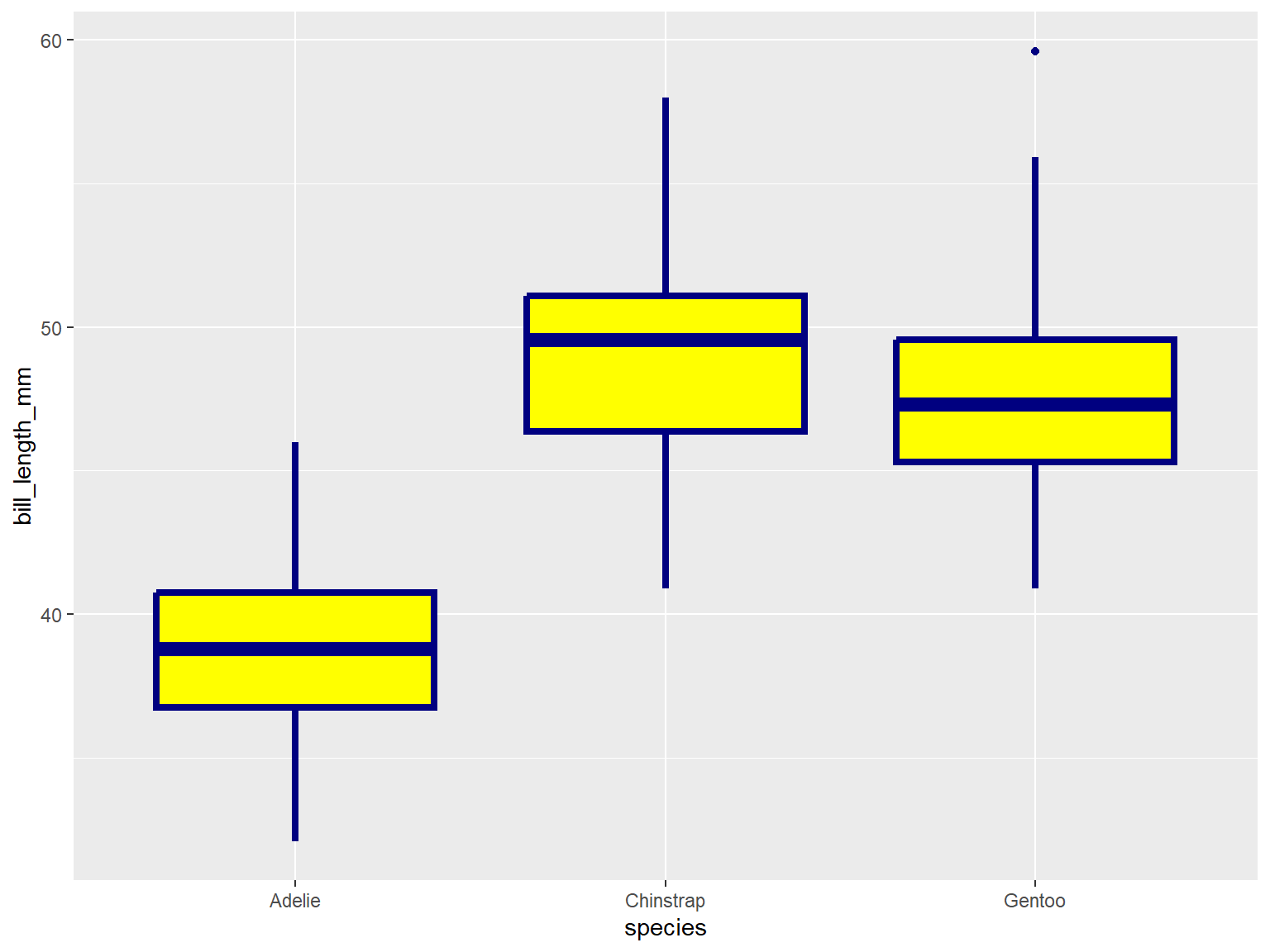 ggplot(penguins, aes(x = species, y = bill_length_mm)) +