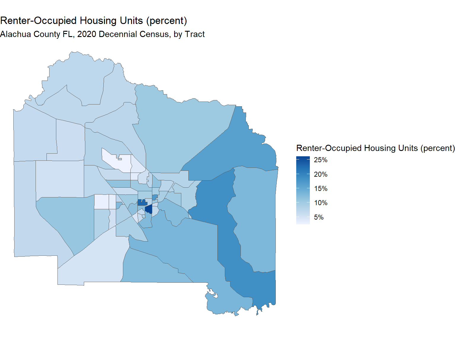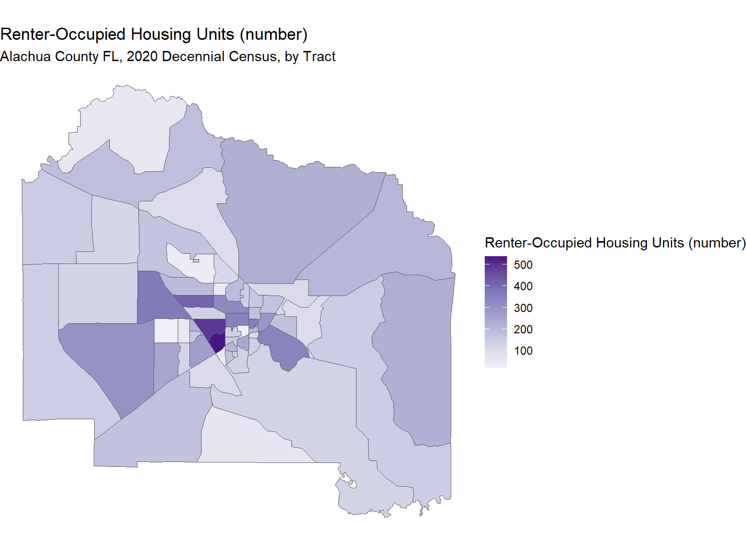 subtitle = "Alachua County FL, 2020 Decennial Census, by Tract",