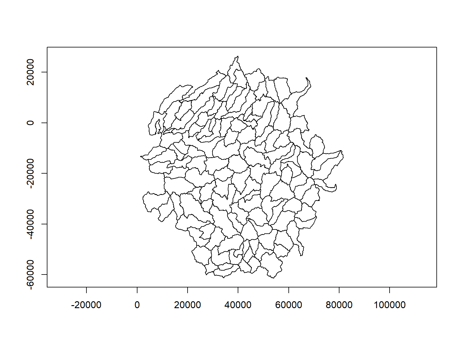 plot(st_geometry(yose_watersheds), axes=TRUE)